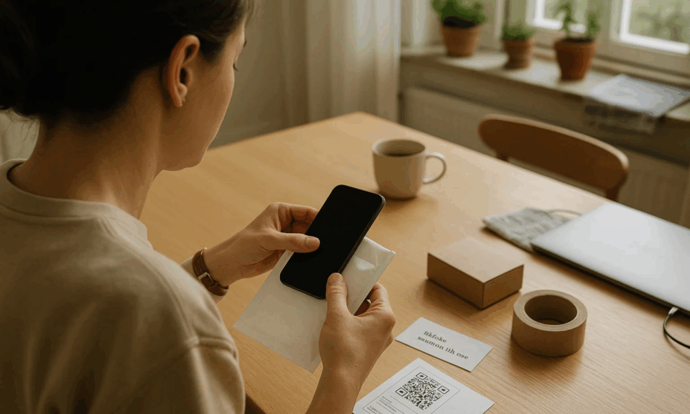 När formuläret är inskickat får du en digital QR-kod via sms och e-post. Visa upp koden hos ditt närmaste postombud, så hjälper de dig med att skriva ut och klistra fast fraktsedeln på paketet.